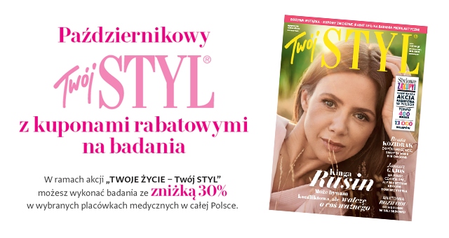 Już 14 września na rynek trafi październikowy numer Twojego STYLU (10/2018) z kuponami rabatowymi na badania profilaktyczne oraz z adresami placówek medycznych, w których można wykonać badania w obniżonej cenie.